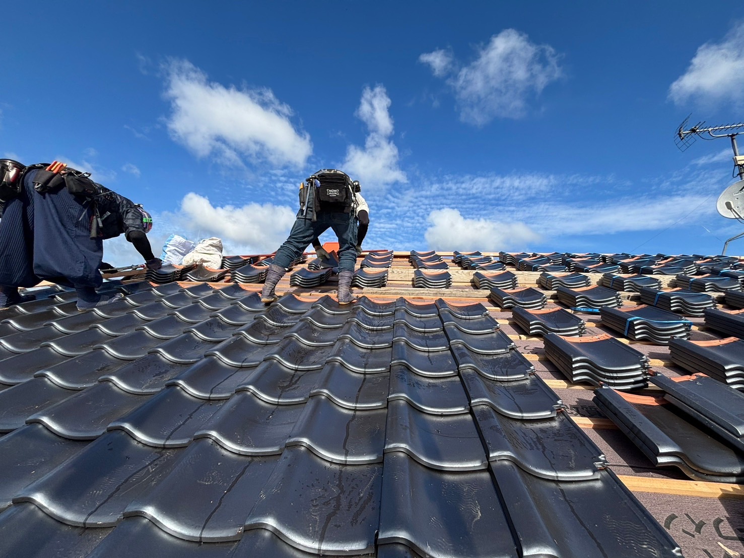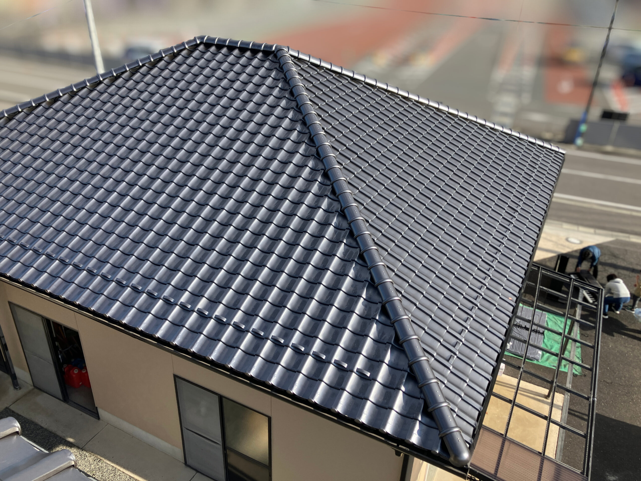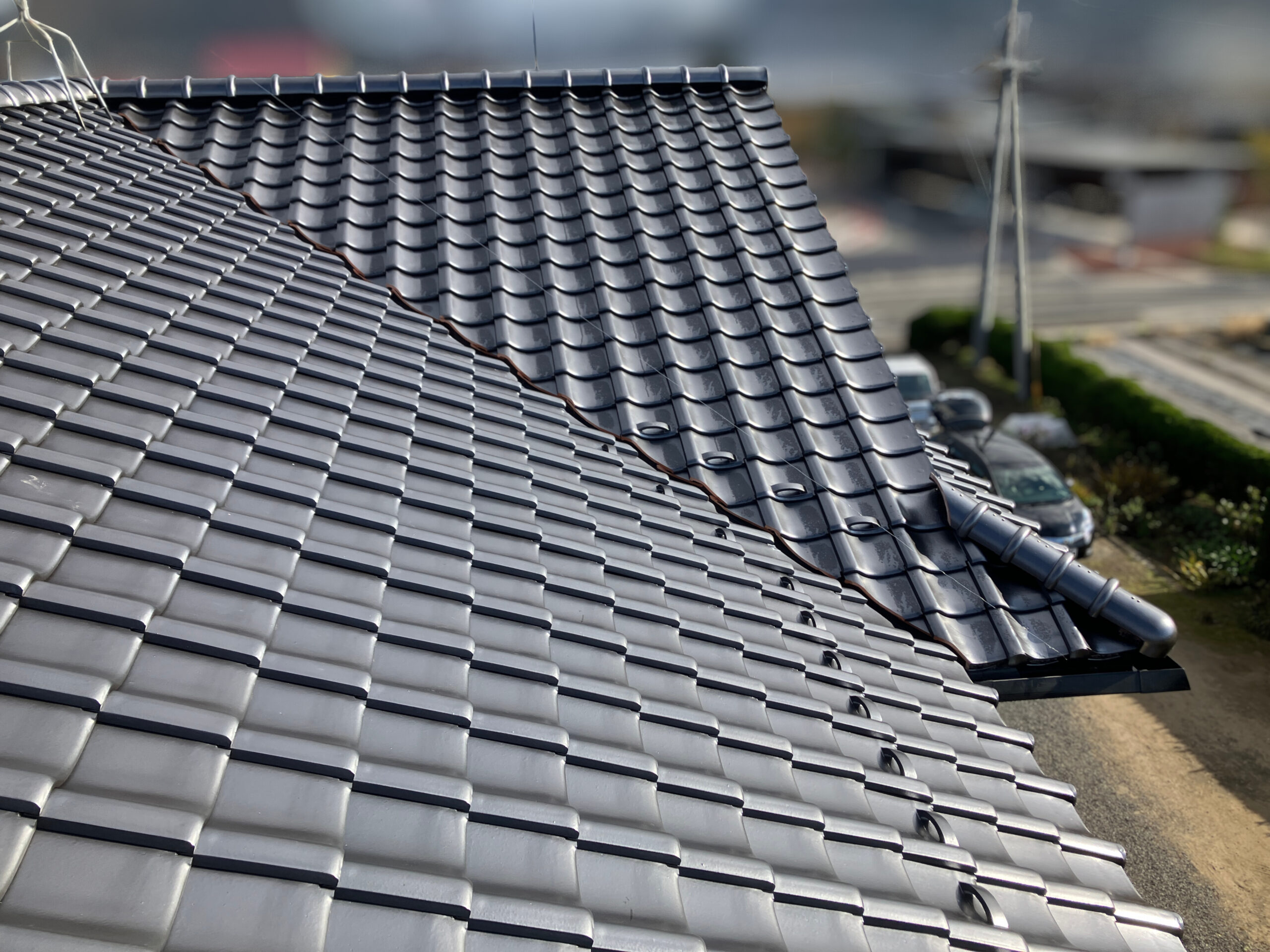 瓦屋根への葺き替えのご要望をいただき、銀黒の光り輝く屋根に✨