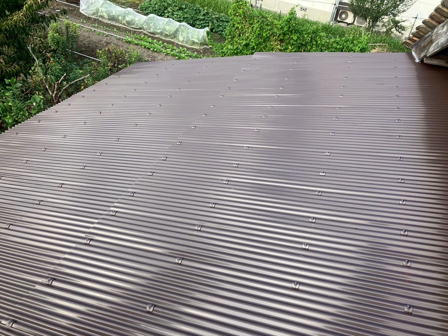 古い波板をすべて撤去し、耐久性・防錆性に優れたガルバリウム鋼板製の新しいトタン屋根を丁寧に施工。