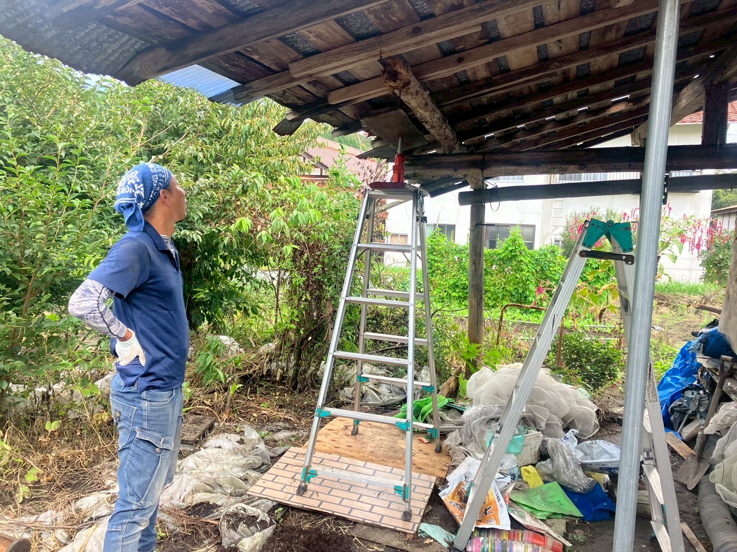 このままでは危険ということで、屋根の構造補強とトタン屋根の張替え工事を行うことに。